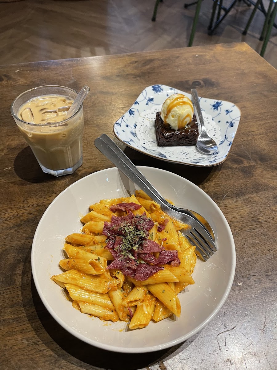 The café features a diverse menu, which includes an enticing selection of drinks and hearty pasta picks. Start your journey with a cup from their Latte Series, where the Dirty Matcha Latte harmonizes the boldness of espresso with the calming essence of matcha for just MYR 14. If you're in the mood for something sweet, try the Mocha, or indulge in a Flavoured Latte available in choices like Caramel, Hazelnut, or Vanilla for MYR 12.
